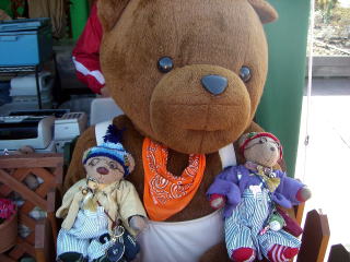 くまさんカステラのお店がありました。看板くまさんと記念撮影です。