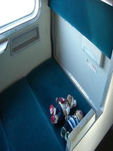 鉄道記念館に展示してある昔の寝台車です。寝てみました。。
