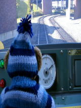 鉄道記念館では小さな電車にも乗りました。運転席でごきげんです。