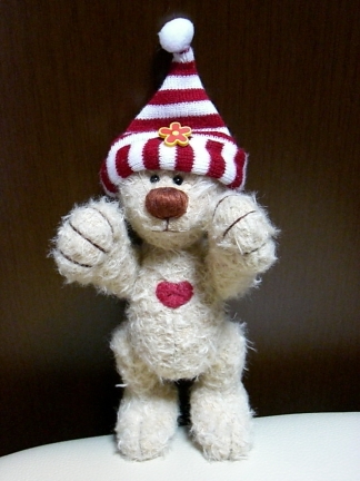 手足を大きく、目はより目の個性的なベアです。周囲の評判は上々なので、今後いろいろなモヘアで作ってみたいと思ってます。