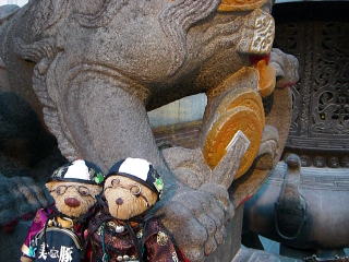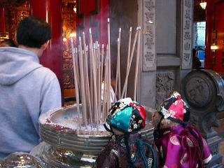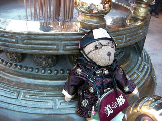 お線香をあげるところはたくさんあって、順番に挿していきます。ボクたちもやってきたよ。